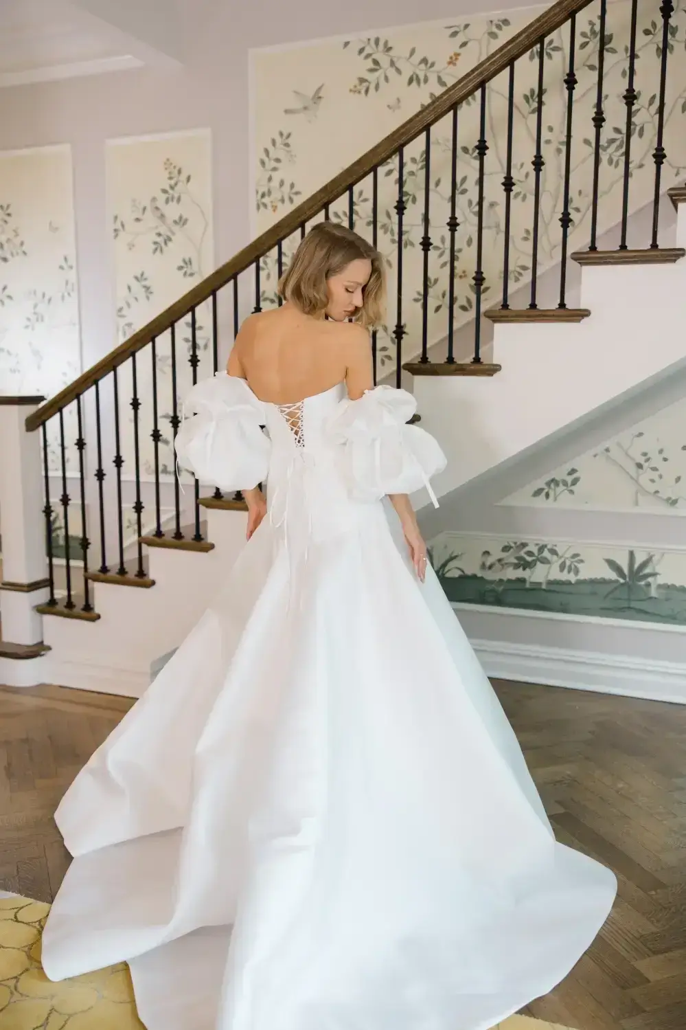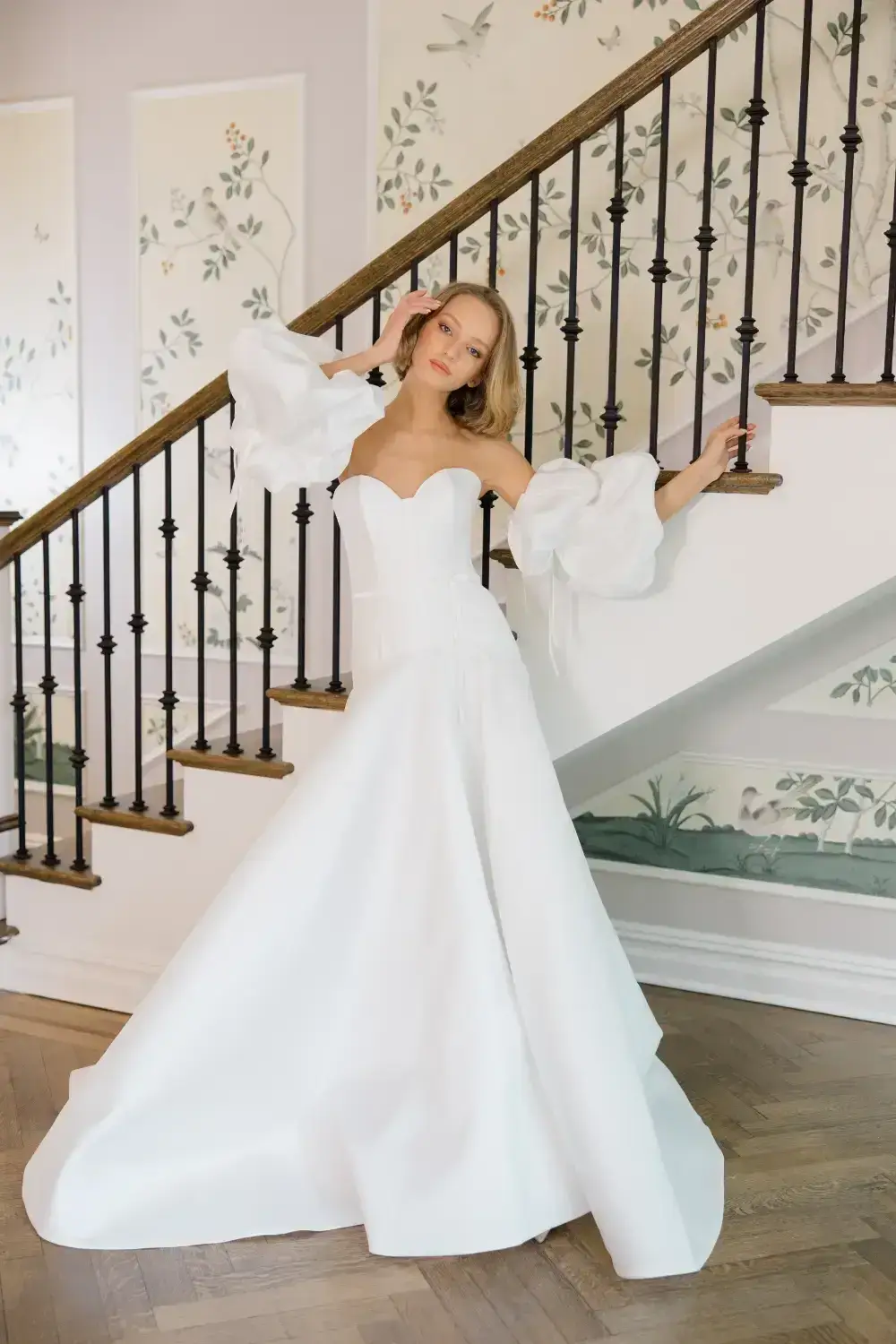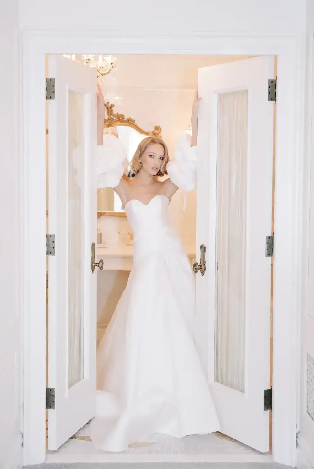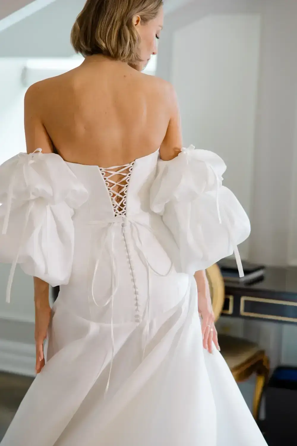 Savin gowns are each handcrafted in London, and priced between $5,500 and $8,000